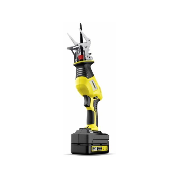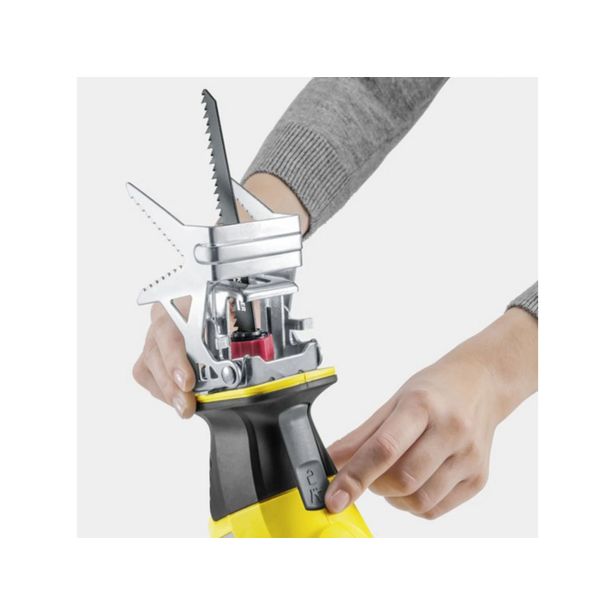 Kärcherjeva baterijska žaga PGS 4-18 je zasnovana za rezanje vej do premera 80 milimetrov. Snemljiv prijem za veje omogoča varno in enostavno uporabo ter preprečuje zdrs vej. Rezila je mogoče odstraniti brez kakršnega koli orodja.
