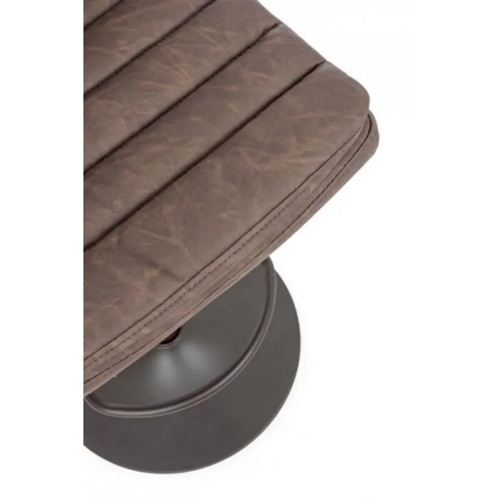 Barski stol CONNOR VINTAGE rjava ima okvir iz kovine, sedalni del je iz poliuretanske pene ki ima čez umetno usnje.