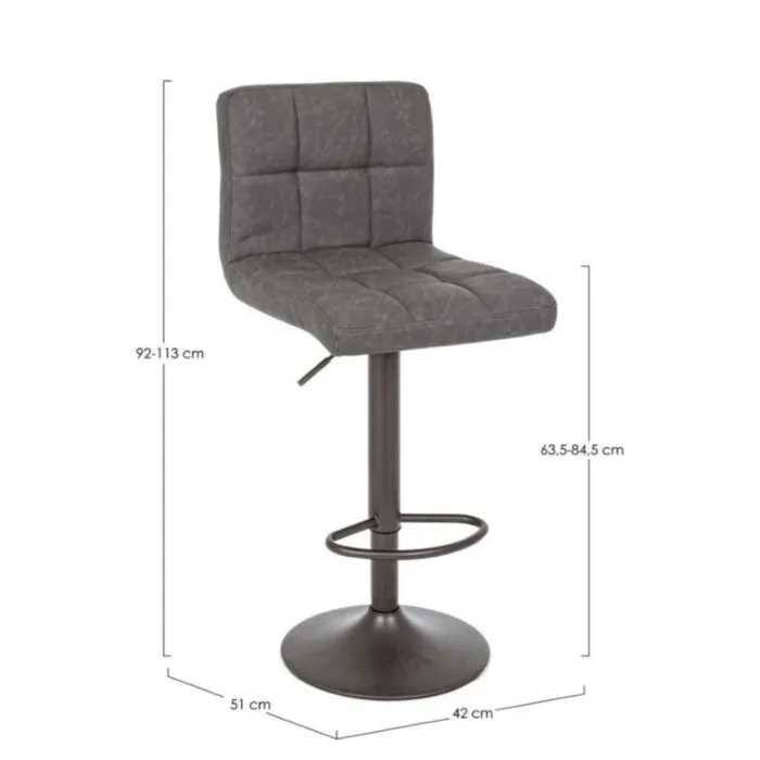 Barski stol GREYSON VINT temno siva ima okvir iz kovine, sedalni del je iz poliuretanske pene ki ima čez umetno usnje.