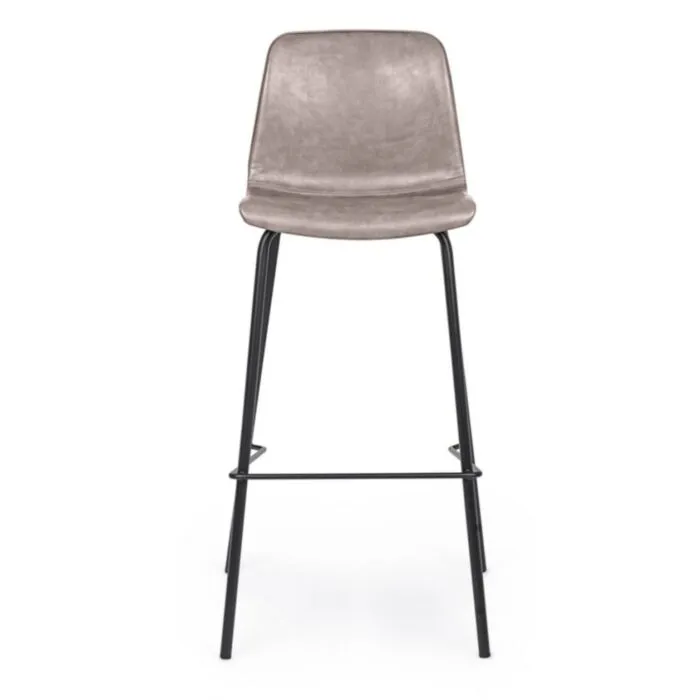 Barski stol KYRA dobavljiv v bež umetnem usnju s črnimi kovinskimi nogami.