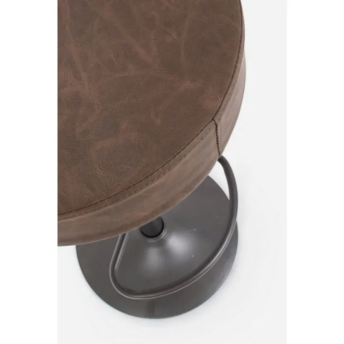 Barski stol PIPER VINTAGE rjava ima kovinsko strukturo, sedalni del je iz poliuretanske pene in oblečena v umetno usnje.