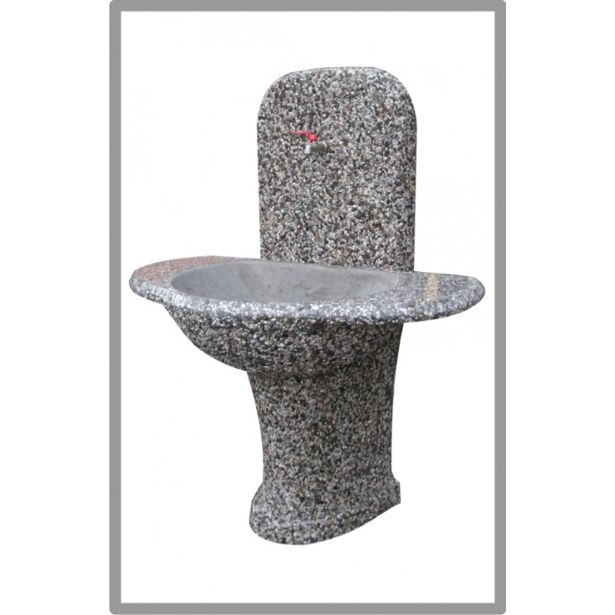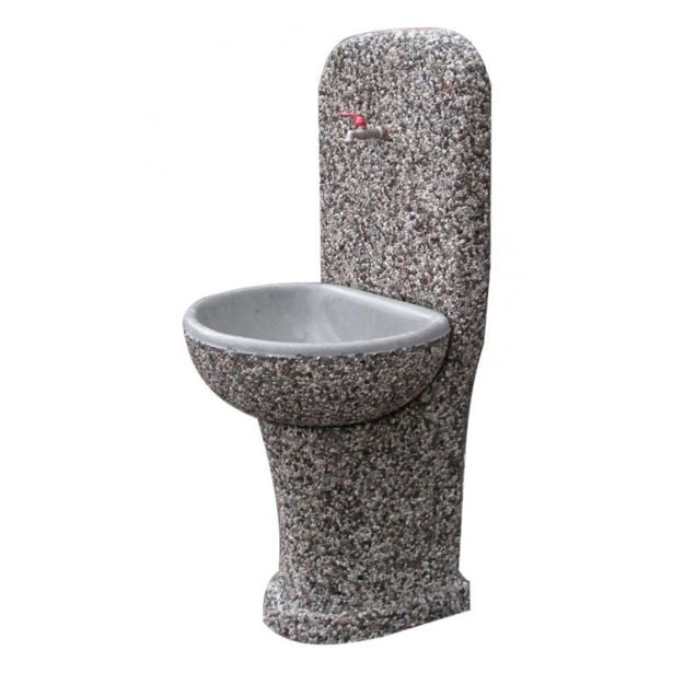 Betonskemu umivalniku Gaber v zgornjem delu namestimo le še pipo (ni v paketu), v spodnjem votlem delu podstavka pa je priključek za vodo in prostor za namestitev odtoka.