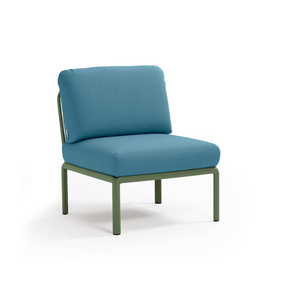 Centralni element KOMODO, za sestavo svoje poljubne garniture ter za poljubno kombinacijo elementov iz serije KOMODO. Barva ogrodja: agave s poljubno barvo blazine. Služi lahko kot centralni element garniture, troseda ali kot tabure ali klubska mizica.