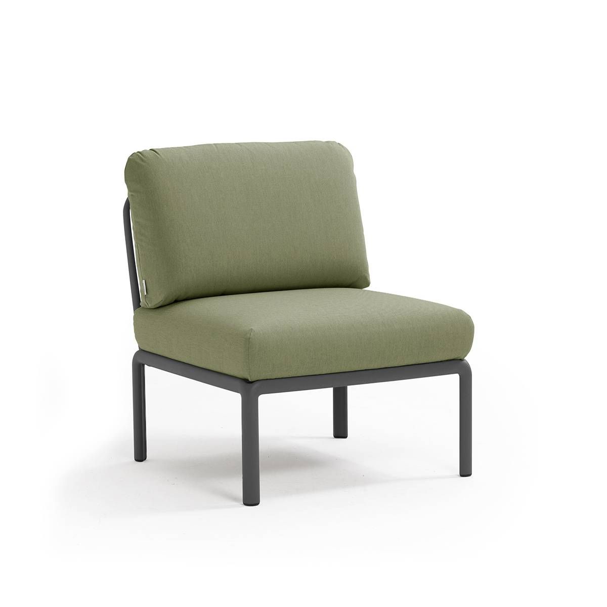 Centralni element KOMODO, za sestavo svoje poljubne garniture ter za poljubno kombinacijo elementov iz serije KOMODO. Barva ogrodja: antracite s poljubno barvo blazine. Služi lahko kot centralni element garniture, troseda ali kot tabure ali klubska mizica.