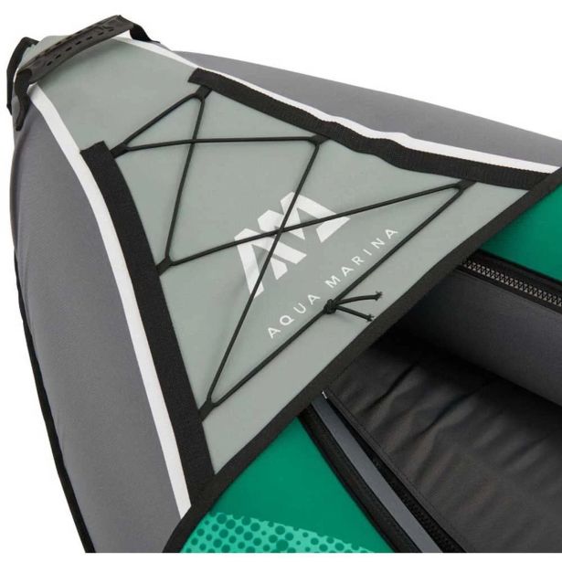 Aqua Marina Laxo je kajak za 1 osebo, ki prihaja iz kolekcije kajakov, ki imajo na premcu izjemno trpežno zaščito pred vdorom vode in elastiko za pritrjevanje prtljage ali tovora, tako na premcu, kot na krmi.