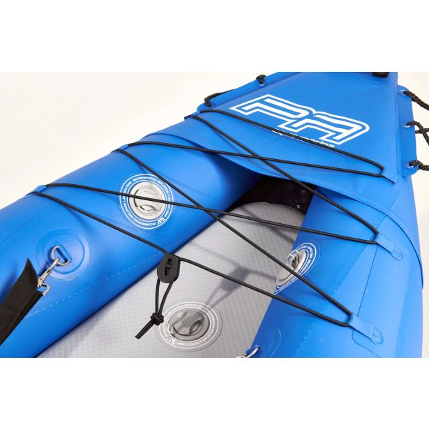 Kajak enostavno in hitro napihnite s priloženo zračno tlačilko in se odpravite dogodivščinam naproti! Pure Air kajak ima vrhunski kajak sedež za enega veslača. Priložena je torba za prenašanje, zračna tlačilka, en nastavljiv naslon za noge, en sedež, 2 smernika in eno veslo. Kajak ima izredno hitre samovarovalne odtočne ventile, na premcu in krmi pa sta gumijasta ročaja za lažje prenašanje.