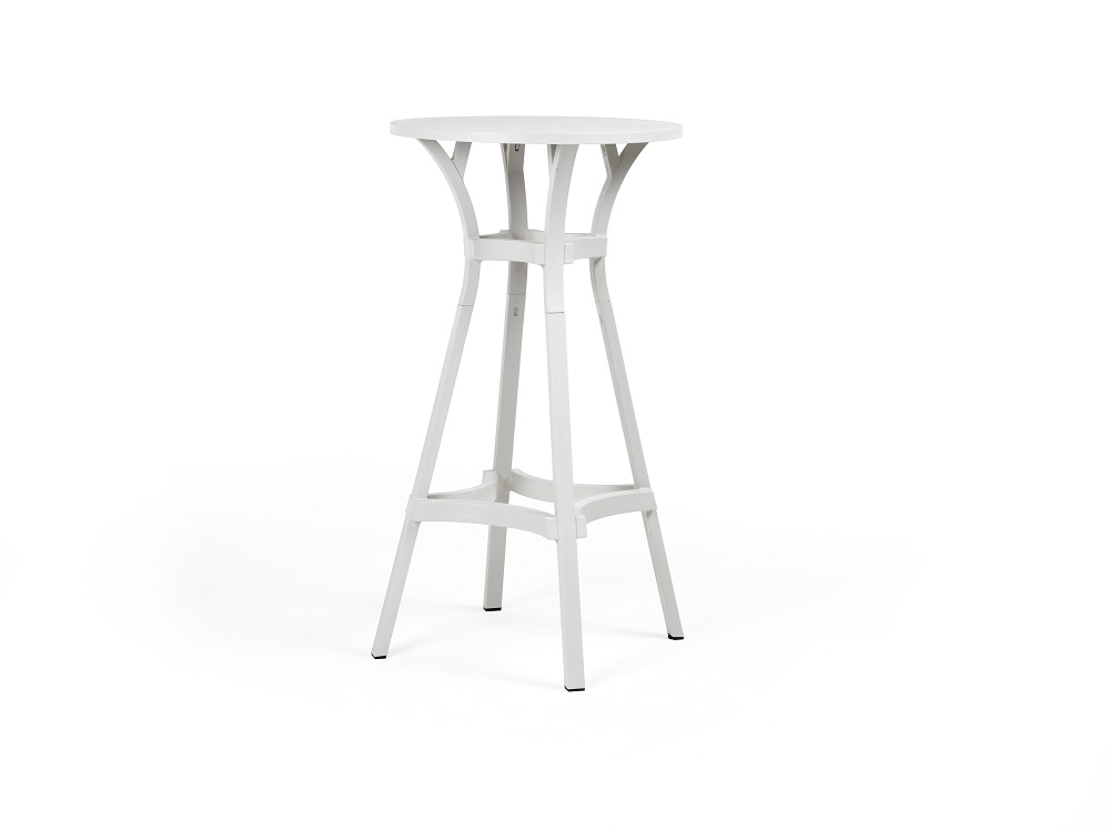 Vrtna barska miza COMBO HIGH je na voljo v štirih barvah, je visoka zunanja miza iz reciklirane plastike. Ima okroglo ploščo premera 70 cm, in je v kompletu z dodatkom podaljška (Kit combo high). Zgornji del se mehansko prilega dnu, in je zahvaljujoč novi tehnologiji izdelana iz 100% recikliranega regeneriranega polipropilena. To ji omogoča popolno ravnost in intenzivno uporabo skozi čas. Barva in tekstura regenerirane plastike sta namensko izbrani, z željo po privlačnem videzu ki je v harmoniji z zunanjo okolico. Subtilne proge, ki niso popolnoma enakomerne, naredi vsak posamičen kos edinstven in neponovljiv. Miza Combo high ima odlične fizikalne in tehnične lastnosti, ter čisto in teksturirano estetsko privlačnost. Ne zahteva posebnega vzdrževanja in je odporna na zunanje vremenske vplive. Combo high je del industrijskega programa Regeneration podjetja NARDI, ki uporablja regenerirano plastiko za izdelavo zunanjega pohištva. K mizi se lepo poda visok stol Stack maxi.