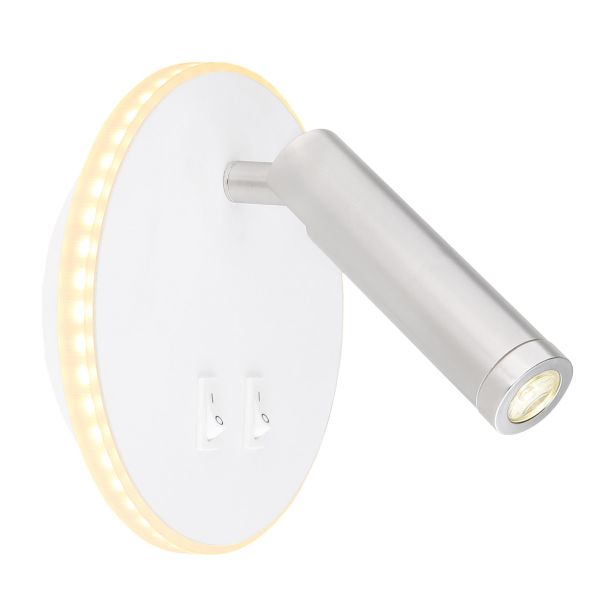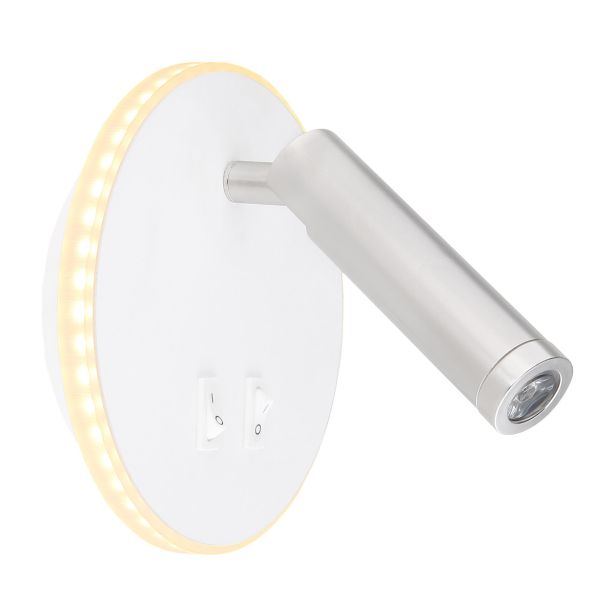 Ta moderna stenska svetilka iz serije Many se čudovito zlije z ambientom najrazličnejših bivalnih stilov, zahvaljujoč preprostemu dizajnu iz bele kovine. Svetilka, je sestavljena iz okrogle kovinske plošče, uokvirjene z opalnim akrilnim obročem z integriranim LED modulom.Svetilko je možno ločeno vklopiti in izklopiti z integriranimi stikali.