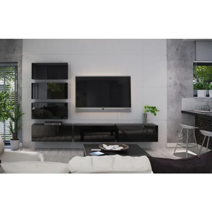 Dnevni regal BOX4 črna je moderen regal, ki je elegantnega videza. Regal je prostoren in praktičen ter bo popestril vaš dnevni prostor. Sprednja plošča je iz MDF-ja, ohišje pa iz iverne plošče debeline 16 mm. Odpira se s sistemom “push to open”.  Sestavljajo ga 3 x enake omarice ter še 3 x enake omarice.
