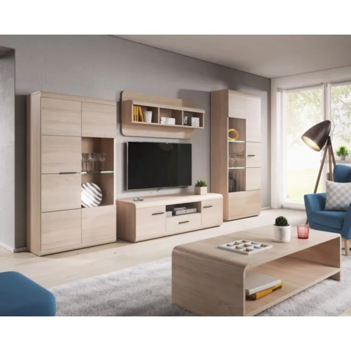 Dnevni regal INK je moderno oblikovan in elegantnega videza. Dobavljiv je v barvi sonoma, ter izdelan v EU. Cena velja za sestav brez klubske mizice.