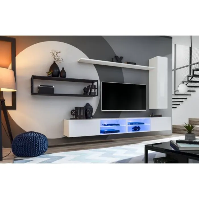 Dnevni regal KAJA je moderno oblikovan in elegantnega videza v kombinaciji lesa in kovine. Vrata visoke omare se odpirajo s push-click sistemom. V ceno je vključena tudi modra led osvetljava.  Izdelan v EU.