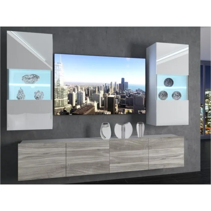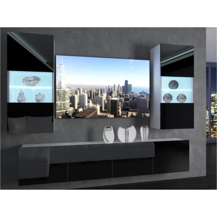 Dnevni regal MADISON modernega videza bo prava izbira za osvežitev vašega dnevnega prostora. Stranice so v mat barvi, ličnice pa v visokem sijaju bele ali črne barve. Debelina stranic je 16mm.