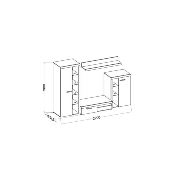 D: 270 cm x G: 40,3 cm x V: 190 cm