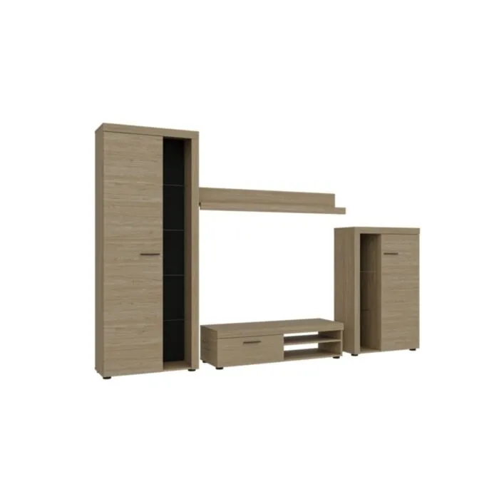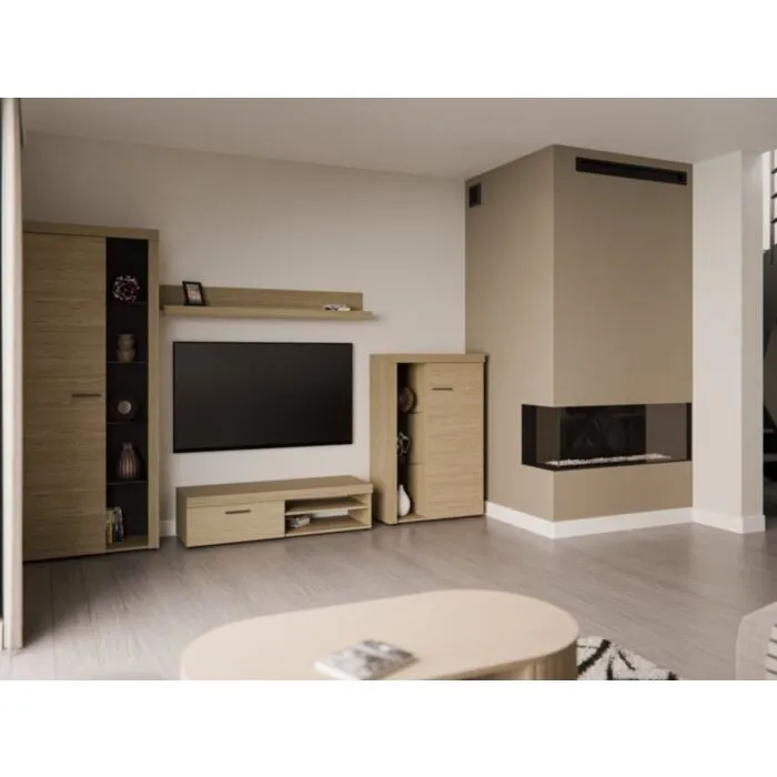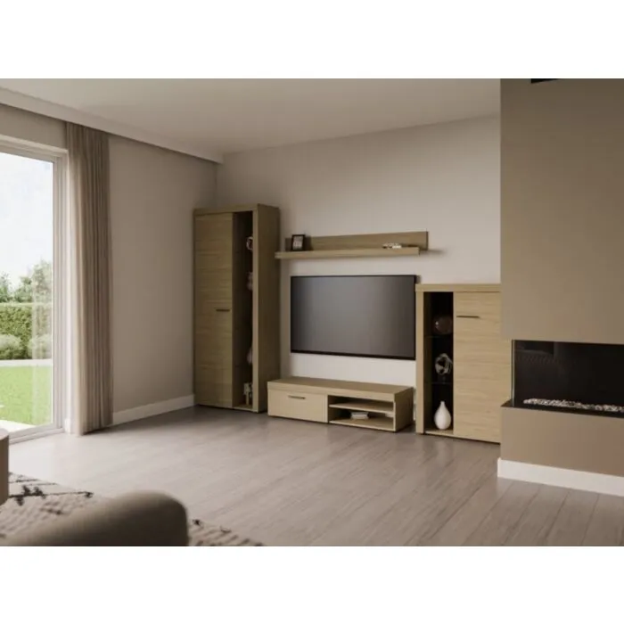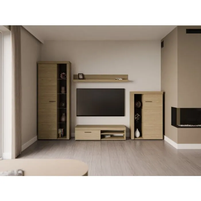 Dnevni regal RUBA svetli hrast je moderno oblikovan in elegantnega videza. Dnevni regal je izdelan v EU. Narejen je iz kakovostne laminirane plošče v svetli barvi hrasta debeline 15 mm ter trdnega in kakovostnega stekla. Ima mat kovinske ročaje, za enostavno odpiranje in zapiranje. Za dodatno eleganco pa lahko dokupiste tudi LED osvetlitev.