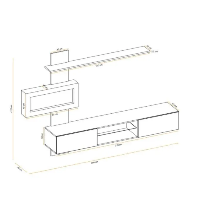Š: 250 cm x V: 170 cm x G: 40 cm