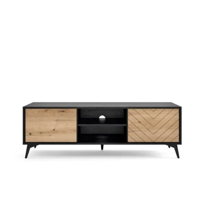 Dnevni TV regal IJAN je narejen iz kvalitetne laminirane plošče, 16 mm debeline. Ima ABS robove in predal se odpira s sistemom “push to open”. Ima jeklene noge višine 14 cm.