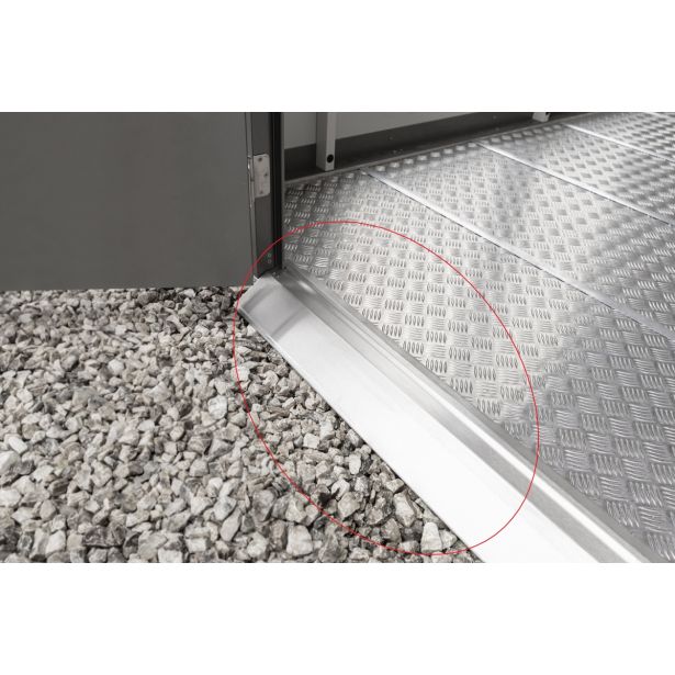 Pregrada za talni pragUporabno za zunanjo in notranjo stran, za udobno vožnjo čez talni prag (možno le pri aluminijastem talnem okviru in dvojnih vratih).