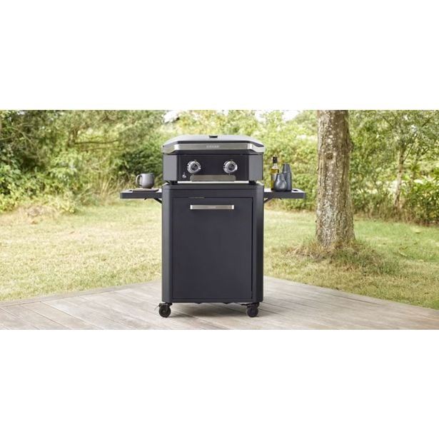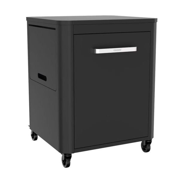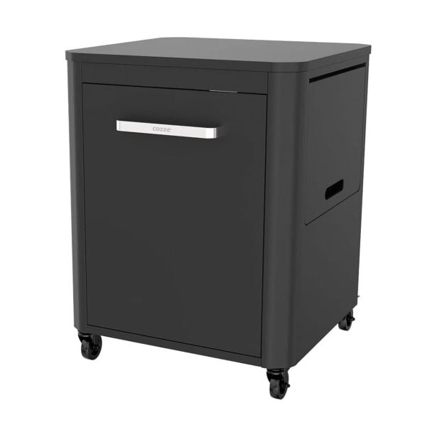 Cozze omara z zložljivo mizo na kolesih je idealna za zunanjo letno kuhinjo, ima dve zložljivi stranski mizici in nosilec za plinsko jeklenko.