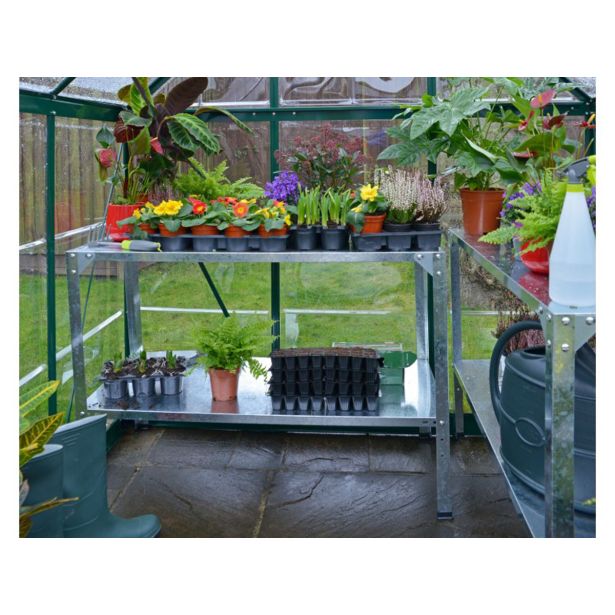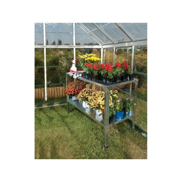 V naši ponudbi najdete tudi pocinkano delovno mizo, ki je preprosta za montažo, in zelo priročna za uporabo. Ima zgornji nivo, kjer boste opravljali dela, in spodnji – za hrambo vaše opreme ali rastlin.