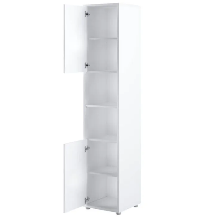 Visoka, navpična, dvovratna knjižna polica z dvema nišama, je na voljo v več barvah. Popolna je za shranjevanje vseh stvari in pri tem zavzame malo prostora. Knjižna omara je odličen dodatek za postelje v omari iz zbirke METULJ. Izdelana je iz laminirane plošče z vzdržljivimi robovi iz ABS-a. Ima 5 polic, 1 predal ter 1 vrata. Ima mehko zapiranje ter odpira se s sistemom push to open.