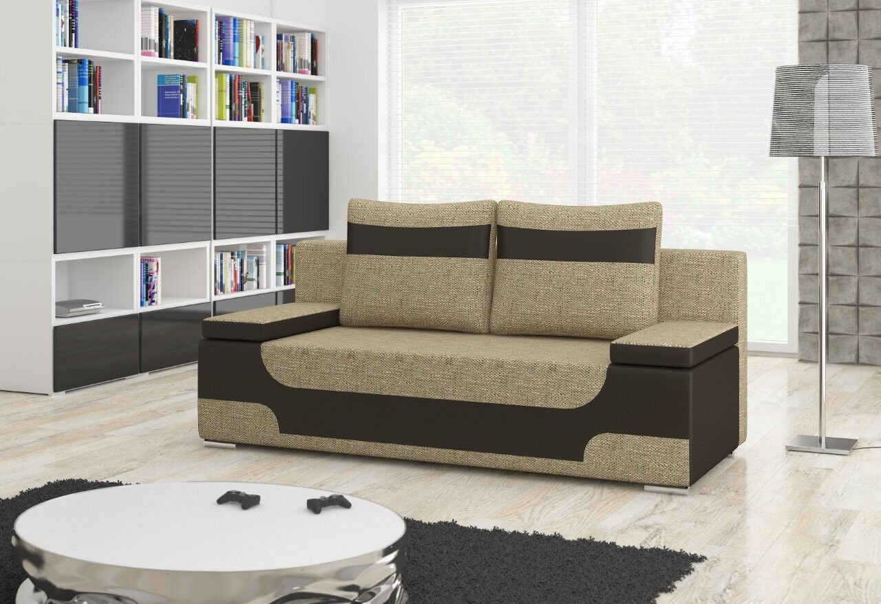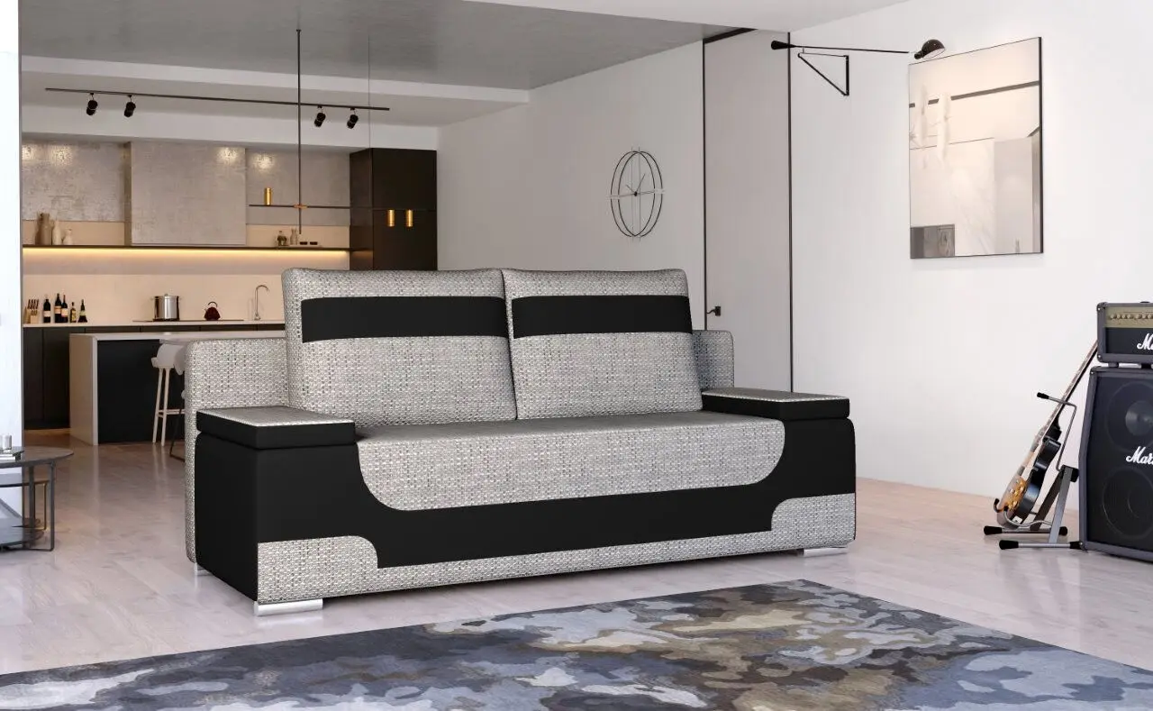 Dvosed ARENA je izdelana iz kakovostnih materialov. V prostor prinaša eleganco in svežino, ki jo je mogoče še nadgraditi z veliko izbiro barvnih kombinacij. Zofa je vzmetena z vzmetmi tipa Bonell in se raztegne v udobno ležišče, pod katero je predal za shranjevanje posteljnine.