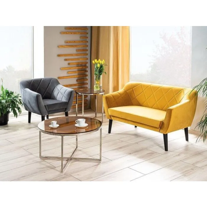 Dvosed KATJANA, je kakovosten kos pohištva, ki popestri vaš prostor. Narejena je iz blaga, kar zagotavlja prijetno sedenje in počitek. S svojo barvo in obliko, da poseben čar elegance. Dobavljiv je v različnih barvah. Nogice so iz lesa bukve v barvi wenge.