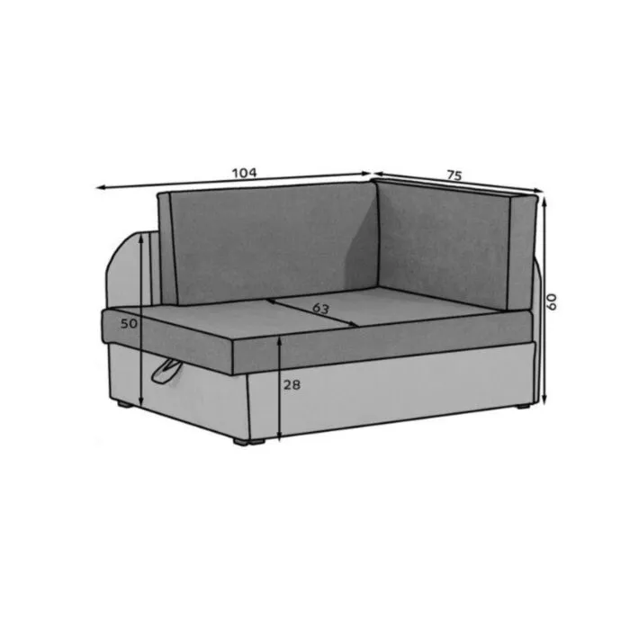 Enostavno se vključi v prostor, ne da bi zavzela preveč le tega. S svojim preprostim dizajnom se odlično ujema s slogom otroške sobe. Enosed se raztegne v udobno posteljo in ima predal za shranjevanje postelnine ali različnih stvari. Izvlečni sistem omogoča enostavno in priročno uporabo, kadar koli jo potrebujete. Zahvlajujoč polnilu iz pene je mehek za sedenje in počitek.