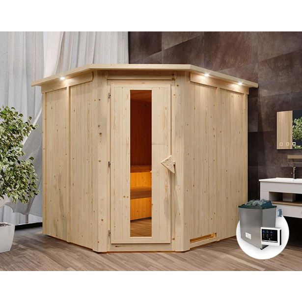 Domov > Trgovina > Wellness in spa > Savne - Ir savna - Finska savna > FINSKA SAVNA KARIBU JARIN 2+9KW GRELEC ZR KOTNI VHOD+STREŠ.VENEC