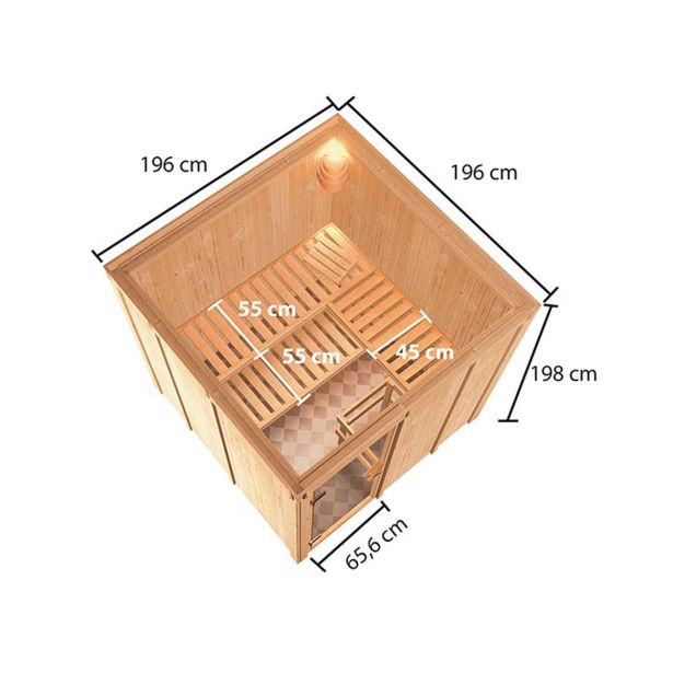 – 1 x Karibu notranja savna Oulu – savna 68mm element – naravna