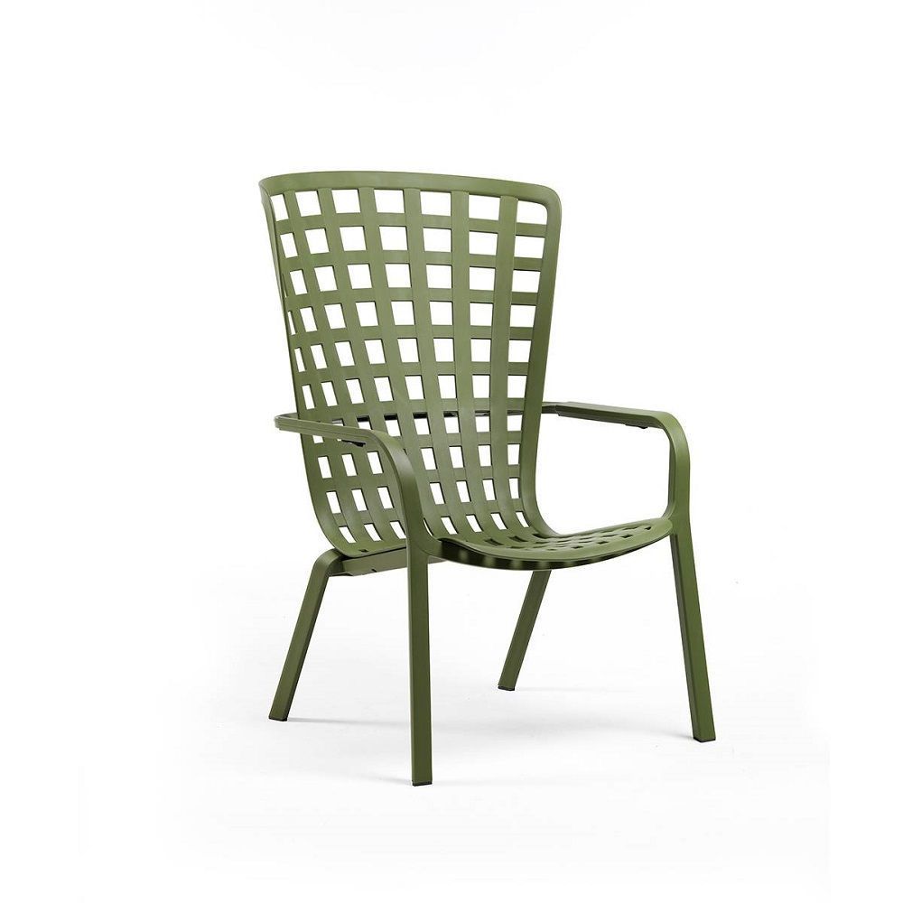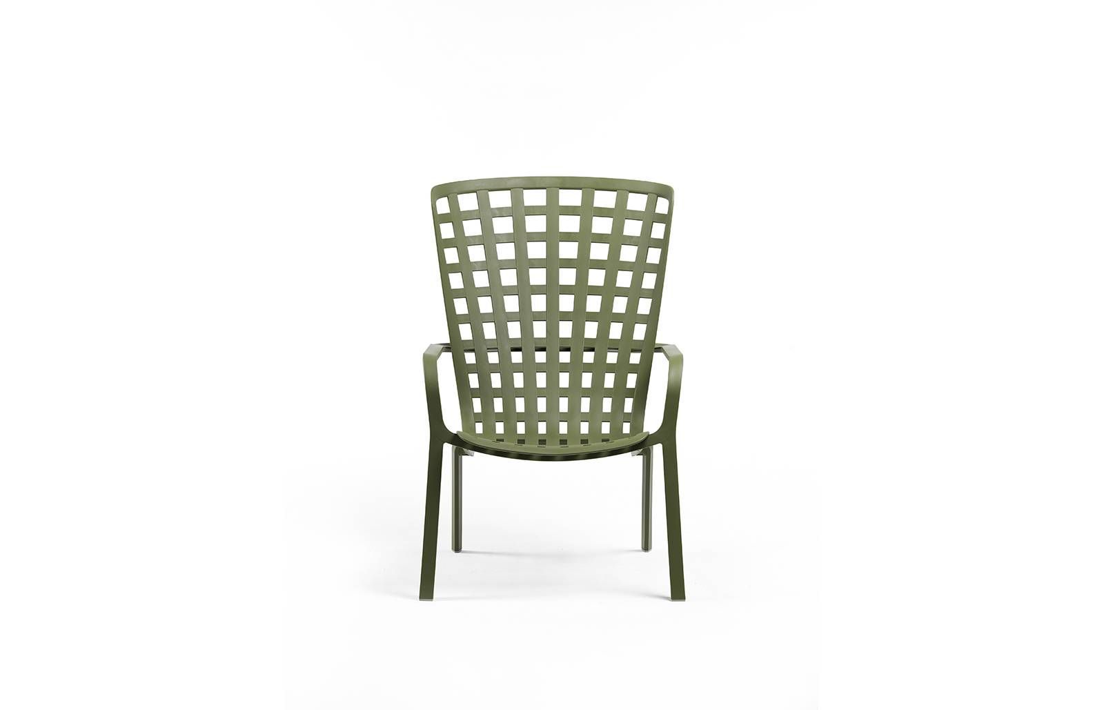 Počivalnik Folio v agave zeleni barvi, italijanskega proizvajalca vrtnega pohištva NARDI. Počivalnik Folio je zasnovan zelo funkcionalno, saj lahko na njem preprosto uživamo v sedečem položaju. Nastavitev hrbtnega dela je na voljo s preprostim pritiskom na gumb, ki leži pod naslonjali za roke. Počivalnik je izdelan iz enakomerno obarvane polipropilenske smole iz steklenih vlaken, kateri so dodani UV dodatki, za boljšo UV obstojnost. Perforiran kvadratni vzorec daje počivalniku dodatno estetsko vrednost. Površina počivalnika ima mat zaključek in je prijetna na otip.