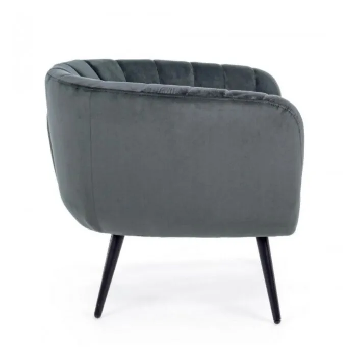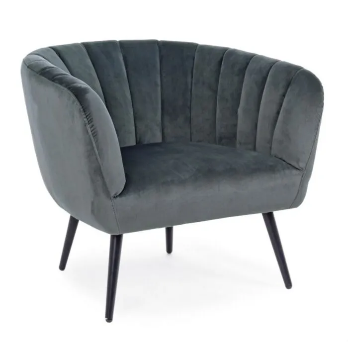 Fotelj AVRIL siva ima konstrukcijo iz lesene plošče, kovinske noge z premazom ter prevleko iz poliestra ki oddaja žametni učinek.