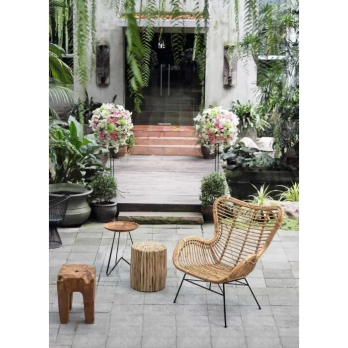 Fotelj CASILDA natur ima strukturo sedeža iz ratana, ima naravno prevleko z melaminsko barvo. Ima kovinske noge v črni barvi. Priporočamo, da se ne izpostavlja slabemu vremenu ali pa direktnim sončnim žarkom.