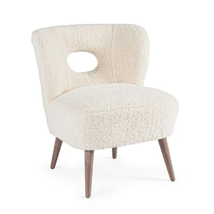 Fotelj CORTINA ima okvir iz borovega lesa ter noge iz lesa. Prevleka je iz poliestra z učinkom volne.