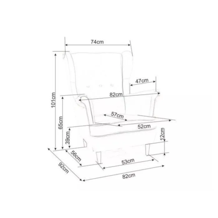 Sedišče in naslon sta mehka ter udobna, kar zagotavlja mehka pena. Nogice so iz lesa barvane v wenge barvo, sedež pa je iz udobnega blaga. Visoki rokonasloni pripomorejo k še večji udobnosti in eleganci.