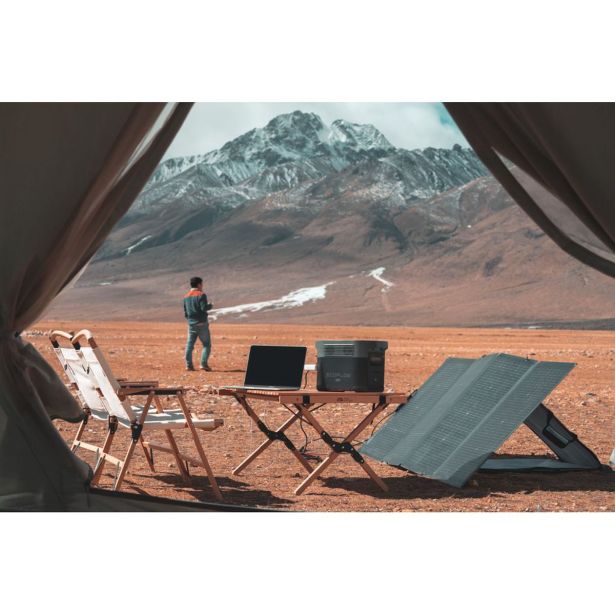Dva v enem: EcoFlow-ov 220W bifacialni prenosni solarni panel je dva v enem. Z 220W primarno stranjo in 155W stranjo na zadnji starni za ambientalno svetlobo lahko zajamete do 25% več sončne energije in še hitreje napolnite svojo prenosno elektrarno. Poskusite z zrcalno površino in dobite lahko do 80% več energije.