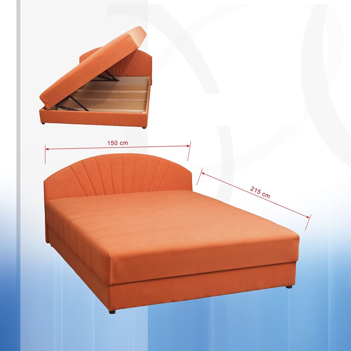 Postelja NIKA je klasična postelja primerna za  mladinsko sobe in spalnico. Je dvižna, ima velik predal za shranjevanje vaših stvari. Ležišče je vzmeteno. Dobavljiva v micro tkanini barve oranžna in modra.