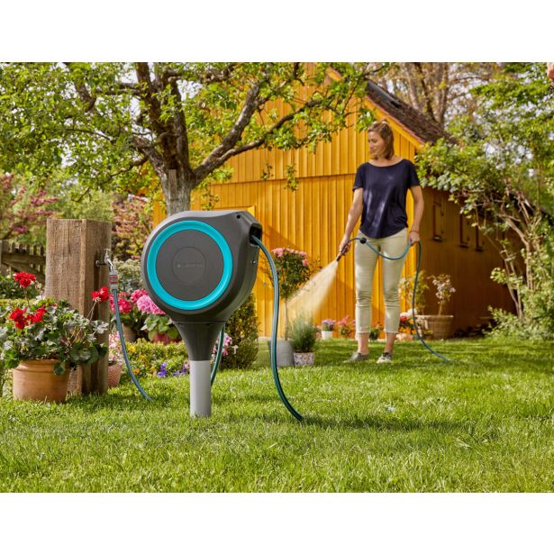 GARDENA Vrtni nosilec za cev RollUp S, ni običajna škatla za shranjevanje cevi. Bodite vedno pripravljeni za akcijo in zalivanje z Vrtnim nosilcem za cev GARDENA RollUp S.