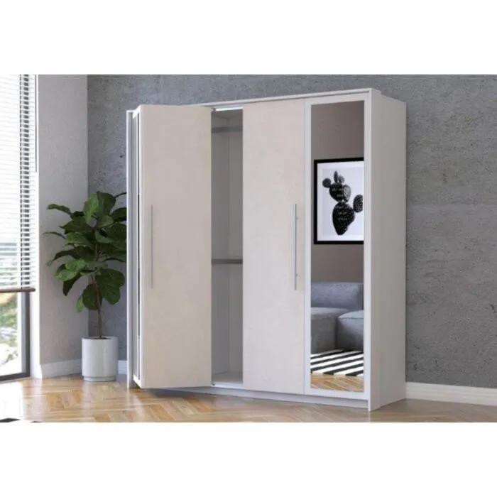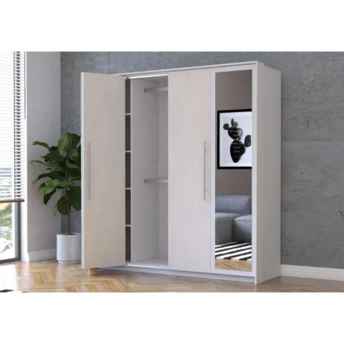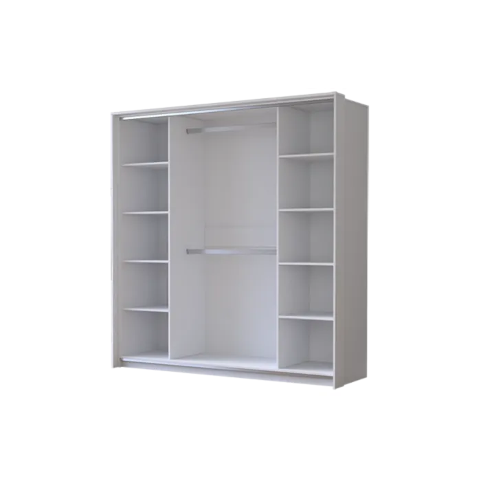 Garderobna omara s drsnimi vrati AMARELA je primerna za vsako spalnico. Narejena je iz trpežne laminirane plošče debeline 16 mm. Omara ima ročaje iz metala in ABS robove, ki zagotavljajo večjo odpornost proti udarcem, vlagi in obrabi ter podaljšujejo njeno življenjsko dobo. ABS robovi ne le ščitijo pred poškodbami, ampak poskrbijo tudi za lepši in elegantnejši videz pohištva.
