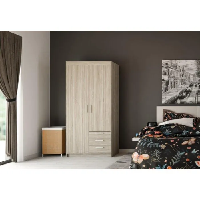 Garderobna omara CINDY 90 cm je klasičnega videza zato je primerna za vsak prostor. Omara je zelo kvalitetna, izdelana v EU. Narejena iz laminirane plošče 15 mm. Vsebuje tudi predale. Na voljo je v več barvah.