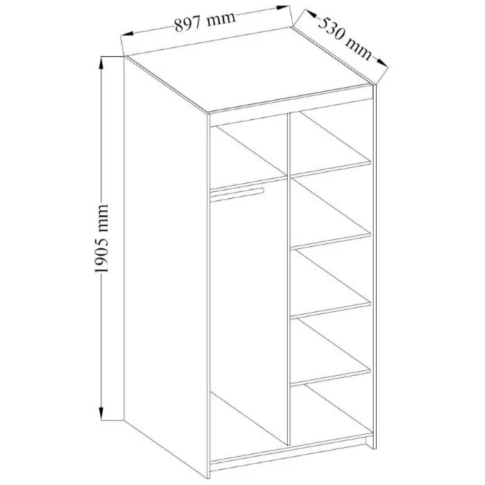 D: 89,7 cm x G: 53 cm x V: 190,5 cm