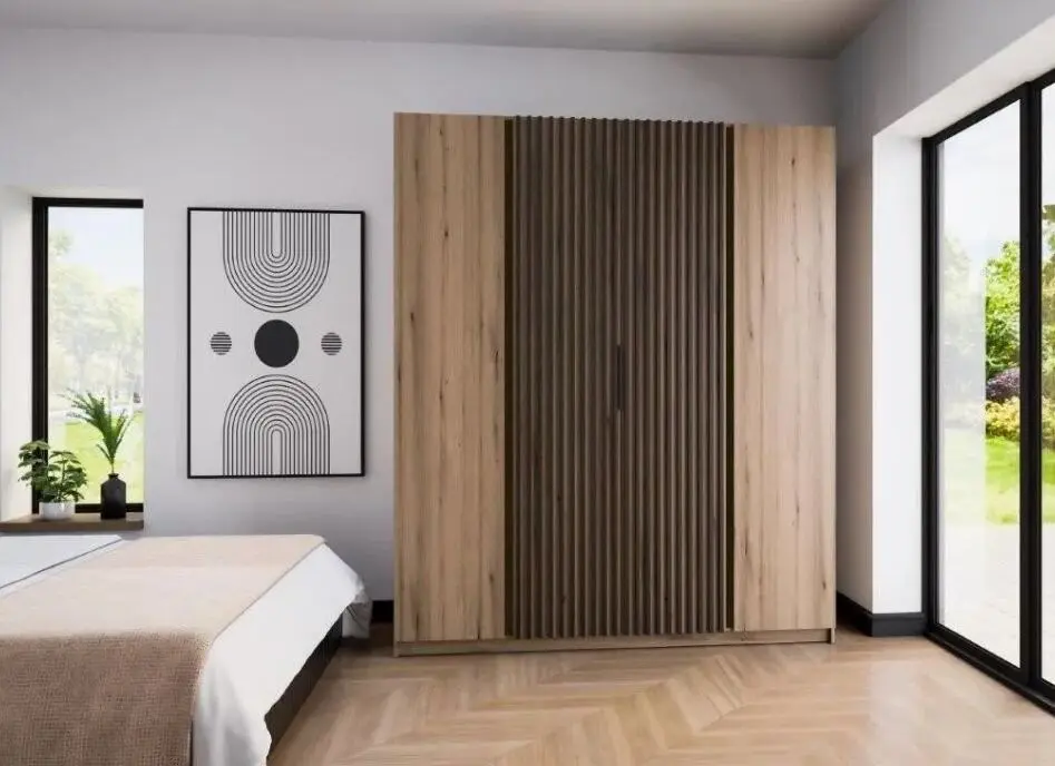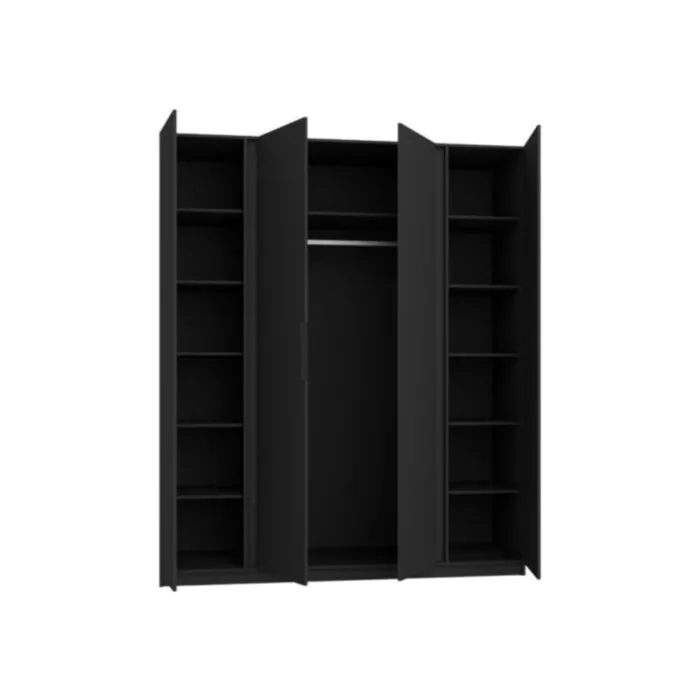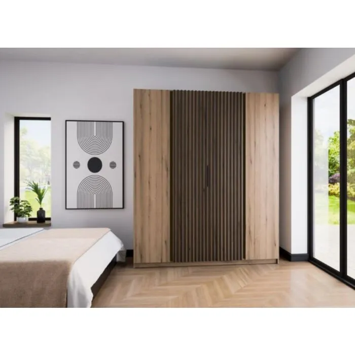Garderobna omara DALILA 1 200 cm ima moderen dizajn. Narejena je iz laminirane plošče debeline 16 mm. Garderobna omara je zelo prostorna, saj ima veliko polic. Na voljo je v hrast in črni barvi. Omara ima ABS robove, ki zagotavljajo večjo odpornost proti udarcem, vlagi in obrabi ter podaljšujejo njeno življenjsko dobo. ABS robovi ne le ščitijo pred poškodbami, ampak poskrbijo tudi za lepši in elegantnejši videz pohištva.