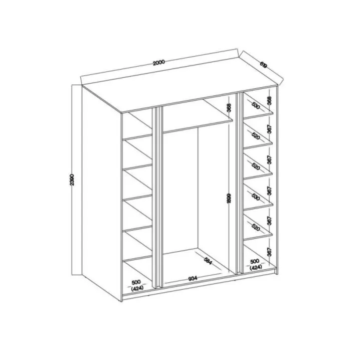 D: 200 cm x G: 61,9 cm x V: 239 cm
