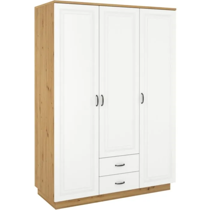 Garderobna omara FAJA  je prostorna in kvalitetna. Sestavljajo jo tri krila z vrati in dva predala. Levo krilo ima dve polici, srednje tri in desno krilo dve polici.