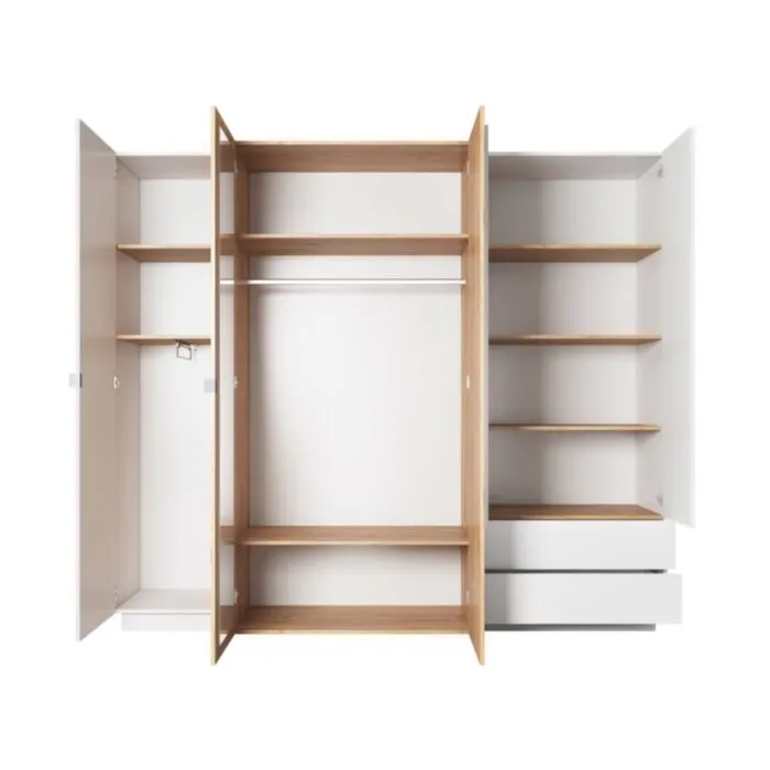 Elegantna in moderna garderobna omara JURČEK, je narejena iz odličnih materialov v beli barvi s kombinacijo zlatega hrasta. Ima ABS robove, ki zagotavljajo večjo odpornost proti udarcem, vlagi in obrabi ter podaljšujejo njeno življenjsko dobo. ABS robovi ne le ščitijo pred poškodbami, ampak poskrbijo tudi za lepši in elegantnejši videz pohištva. S svojo obliko in eleganco popestri vsak prostor. Garderobna omarica ima tudi mehko zapiranje, kar pripomore k njeni funkcionalnost.