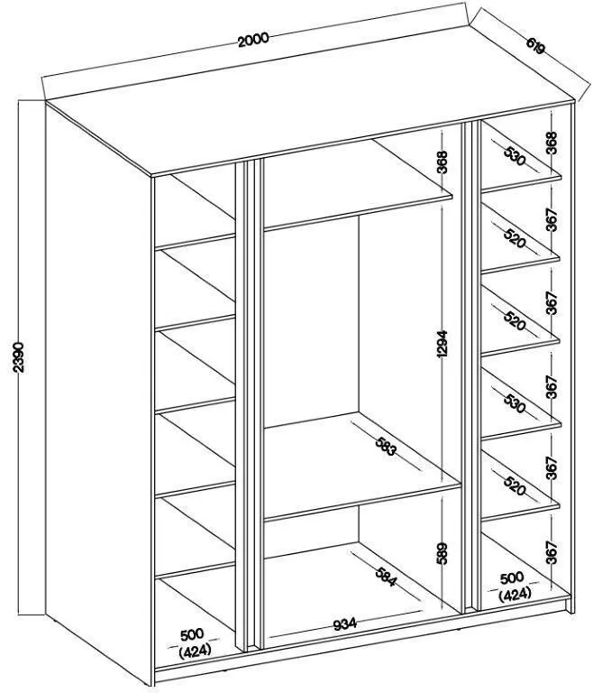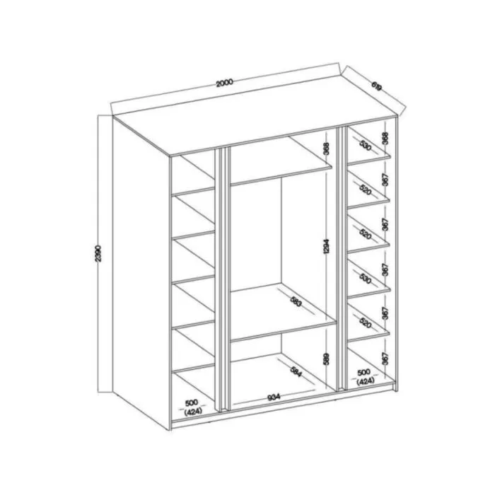 D: 200 cm x G: 61,9 cm x V: 239 cm