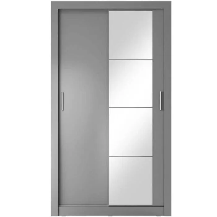 Garderobna omara KREŠO 6 je ozka omara z dvema vratoma in ogledali. Kompaktna je v dimenzijah in ima dvojna drsna vrata.Notri ima dve palici za obešala in prostorne police.