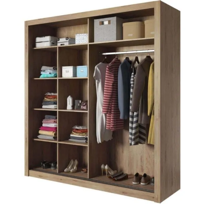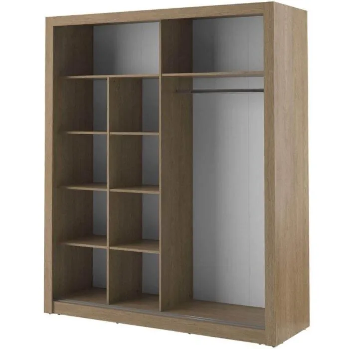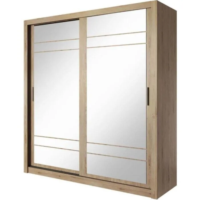 Garderobna omara KREŠO 7 je omara z dvemi drsnimi vrati in ogledali na sprednjih straneh.V notranjosti ima dolgo držalo za oblačila, dve notranji polici s policami in prostorne zgornje police.