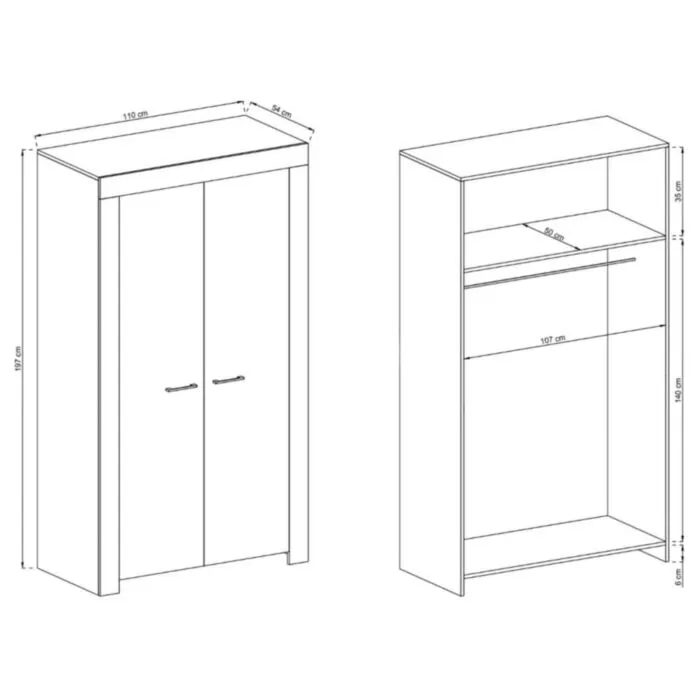 Dobavljiva je v barvi hrast. Njena notranjost omogoča dodatno organizacijo vaših najubših kosov. Ima polico globine 50 cm in prostor z obešalnikom za obešanje, kar dodatno pripomore k njeni funkcionalnosti.