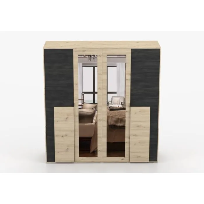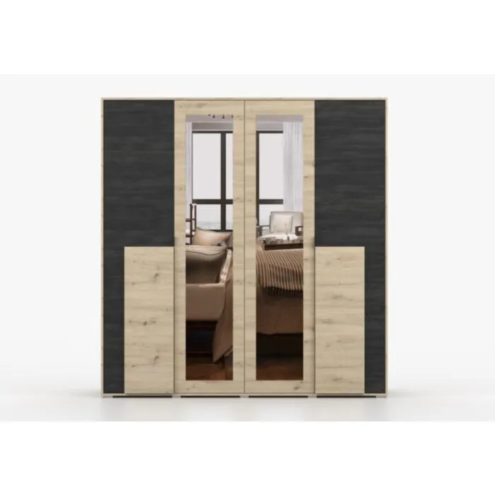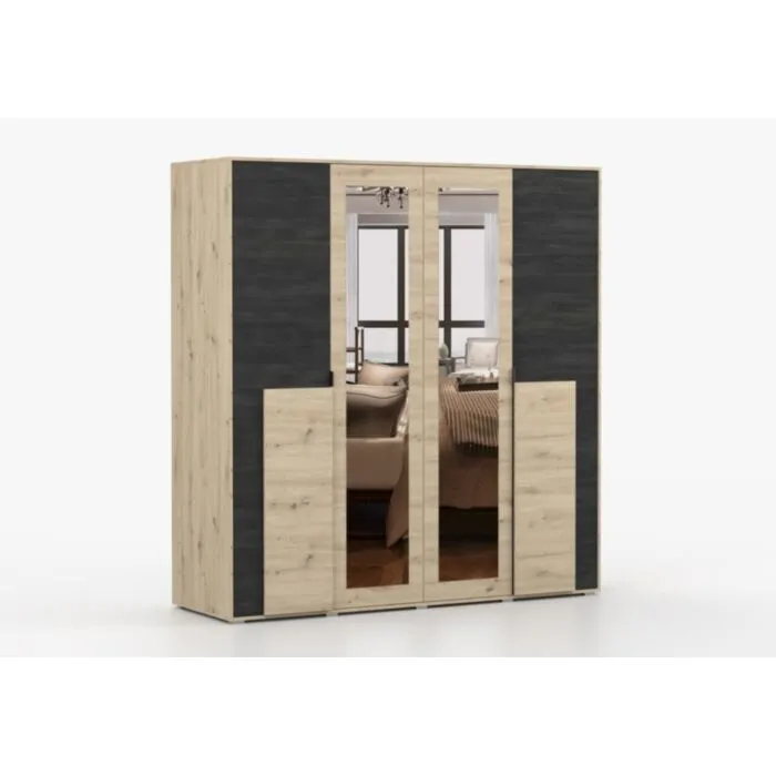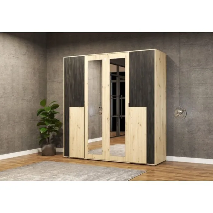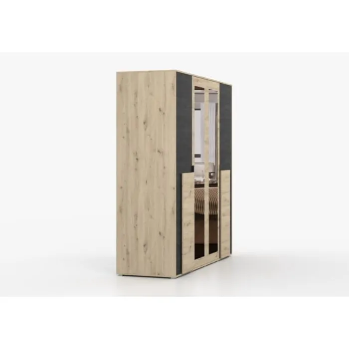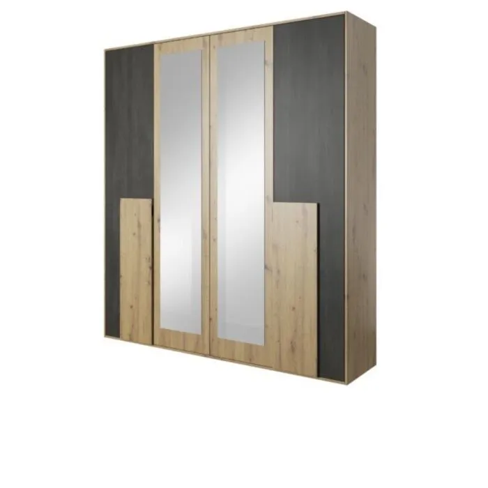 Garderobna omara LAVA je primerna za vsako spalnico. Ima moderen dizajn in narejena je iz trpežne laminirane plošče debeline 16 mm. Notranjost omare je razdeljena na štiri dele, opremljene s policami in dvema vzporednima palicama. Ima ABS robove, ki zagotavljajo večjo odpornost proti udarcem, vlagi in obrabi ter podaljšujejo njeno življenjsko dobo. ABS robovi ne le ščitijo pred poškodbami, ampak poskrbijo tudi za lepši in elegantnejši videz pohištva.