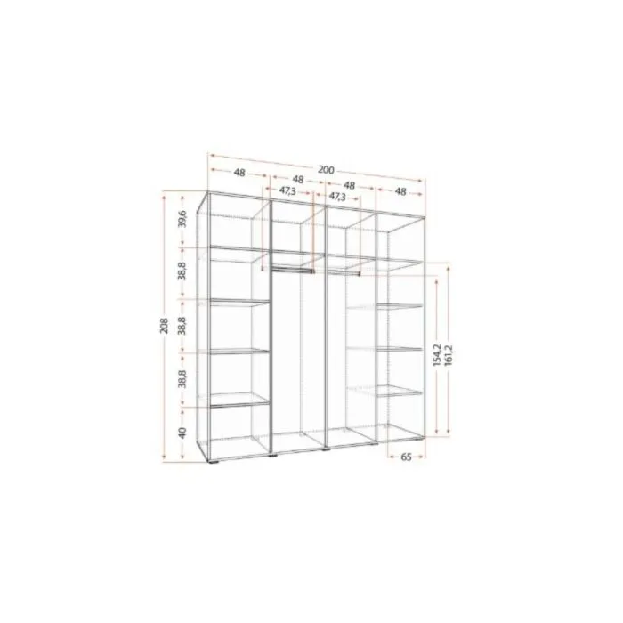 D: 201cm x G: 65 cm x V: 208 cm